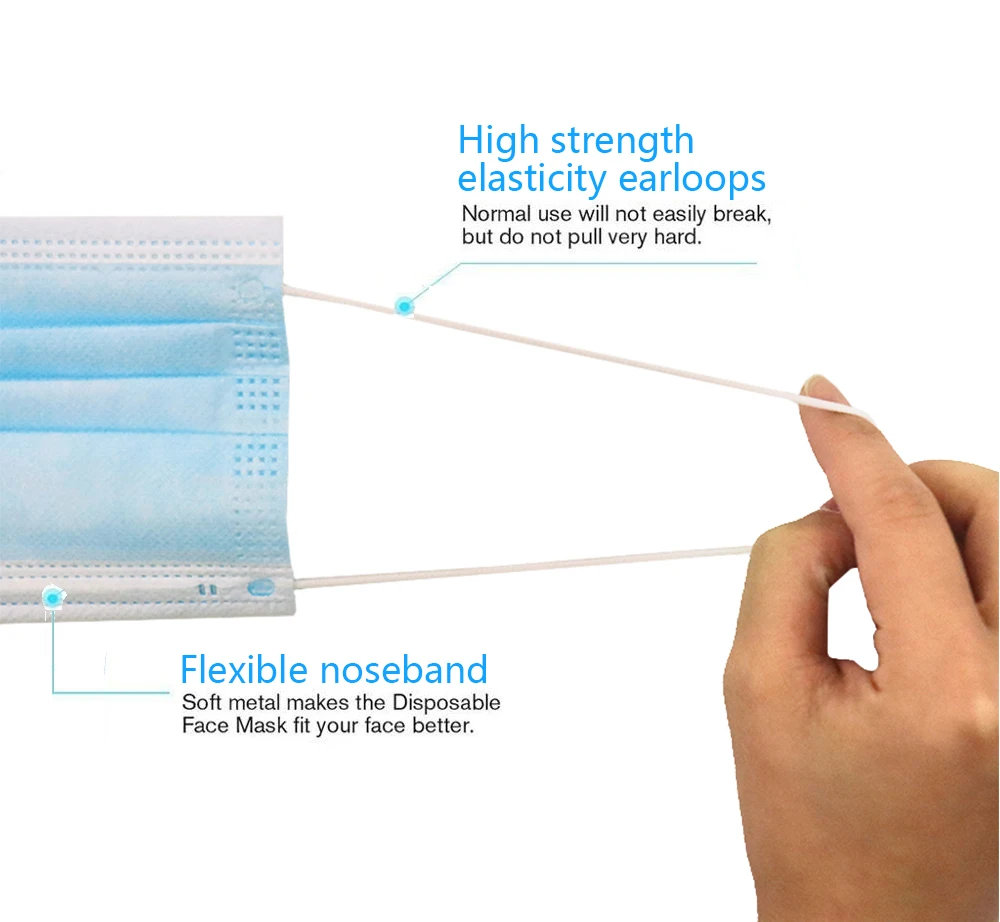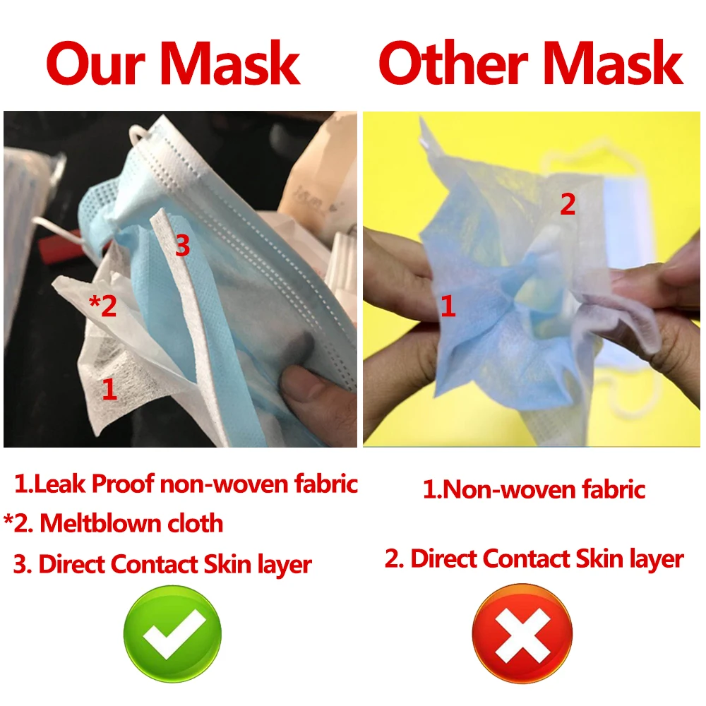 Disposable Mouth Face Mask Anti-Dust 3 Layer Mouth Masks Soft Breathable